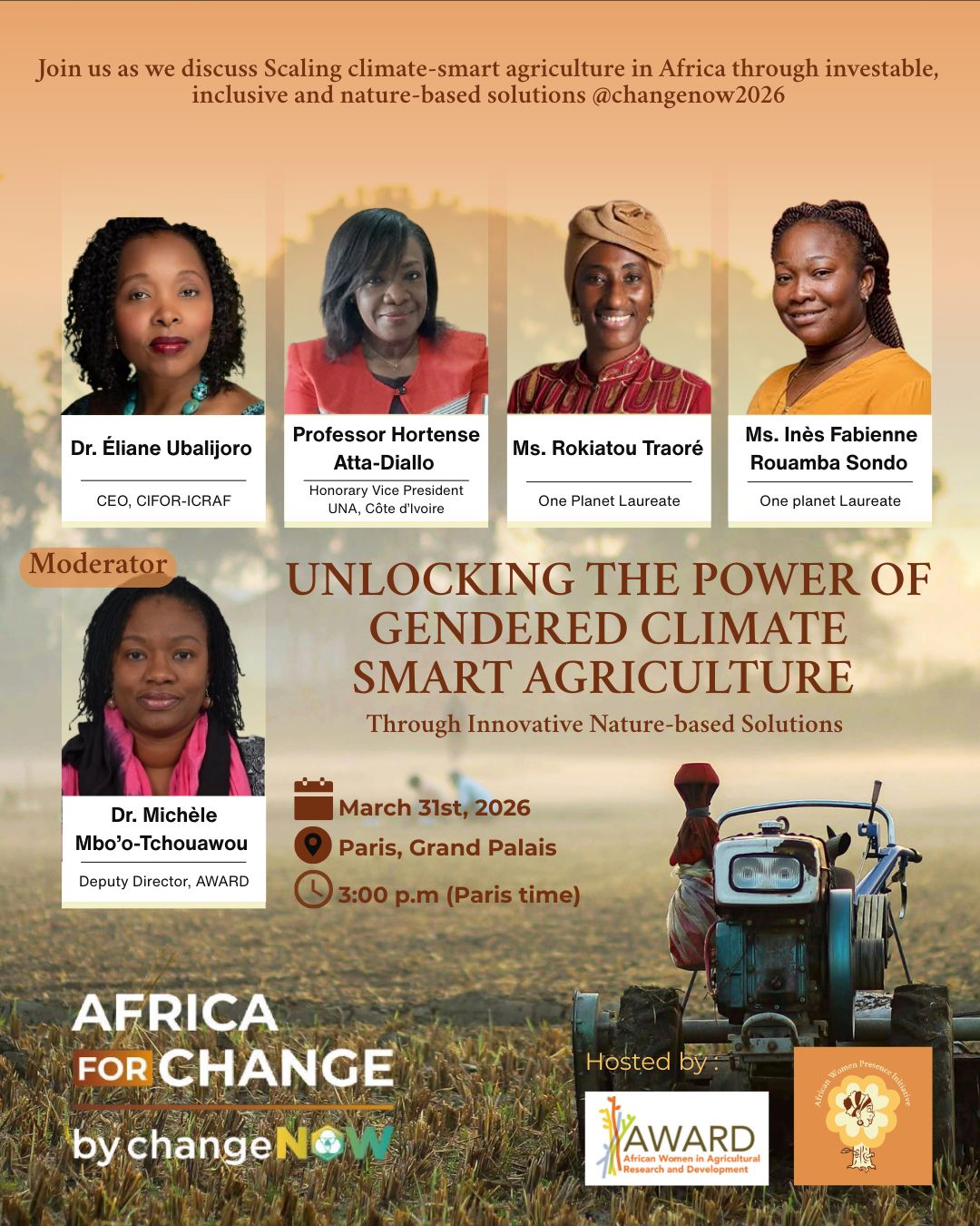 At the ChangeNow 2026 Summit, African Women in Agricultural Research and Development (AWARD) in partnership with the African Women Presence Initiative (AWPI) will co-host a high-level panel session that will explore: